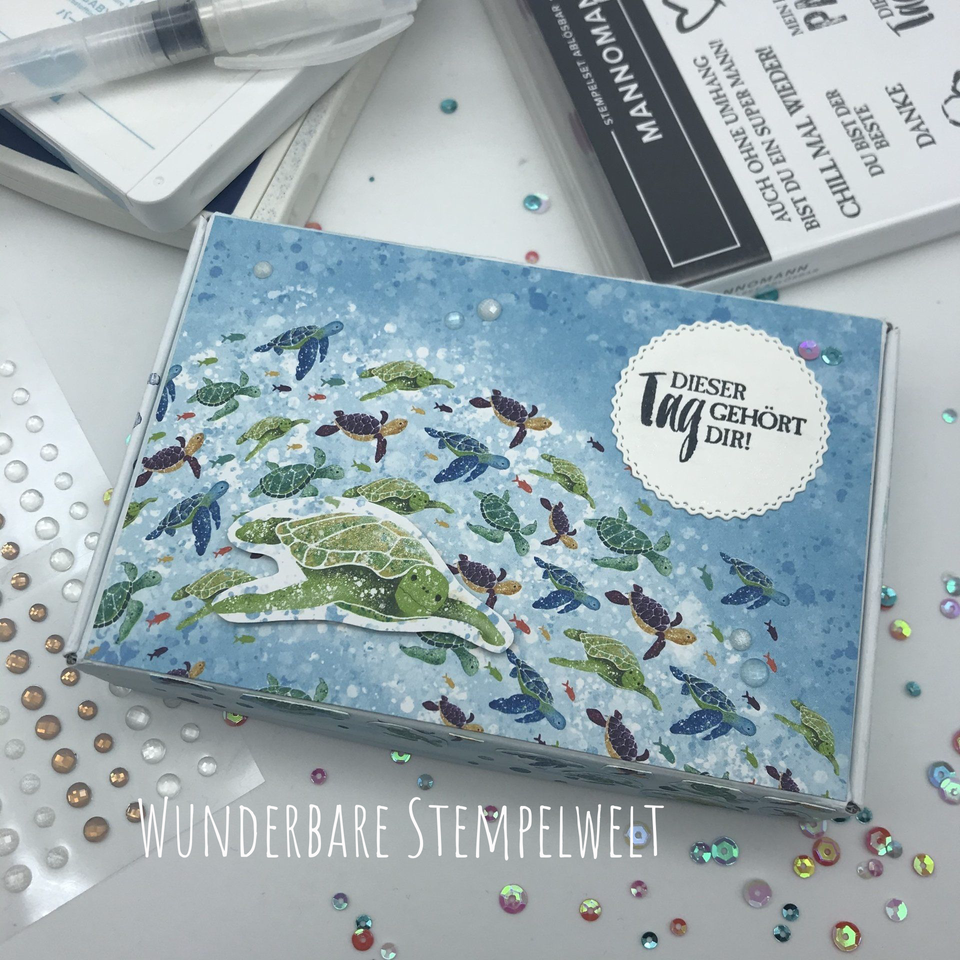 Auf dem Deckel klebt ein Stück vom wunderschönen Schildkröten-Schwarm DSP,