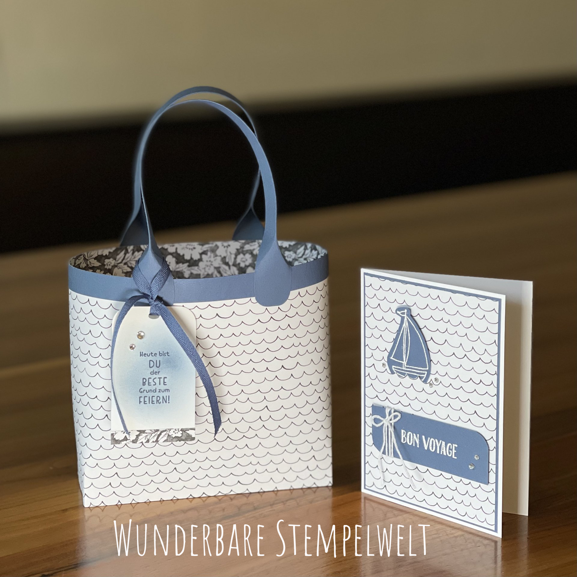 Hier habe ich den Spruch und das Schiff embossed in weiß